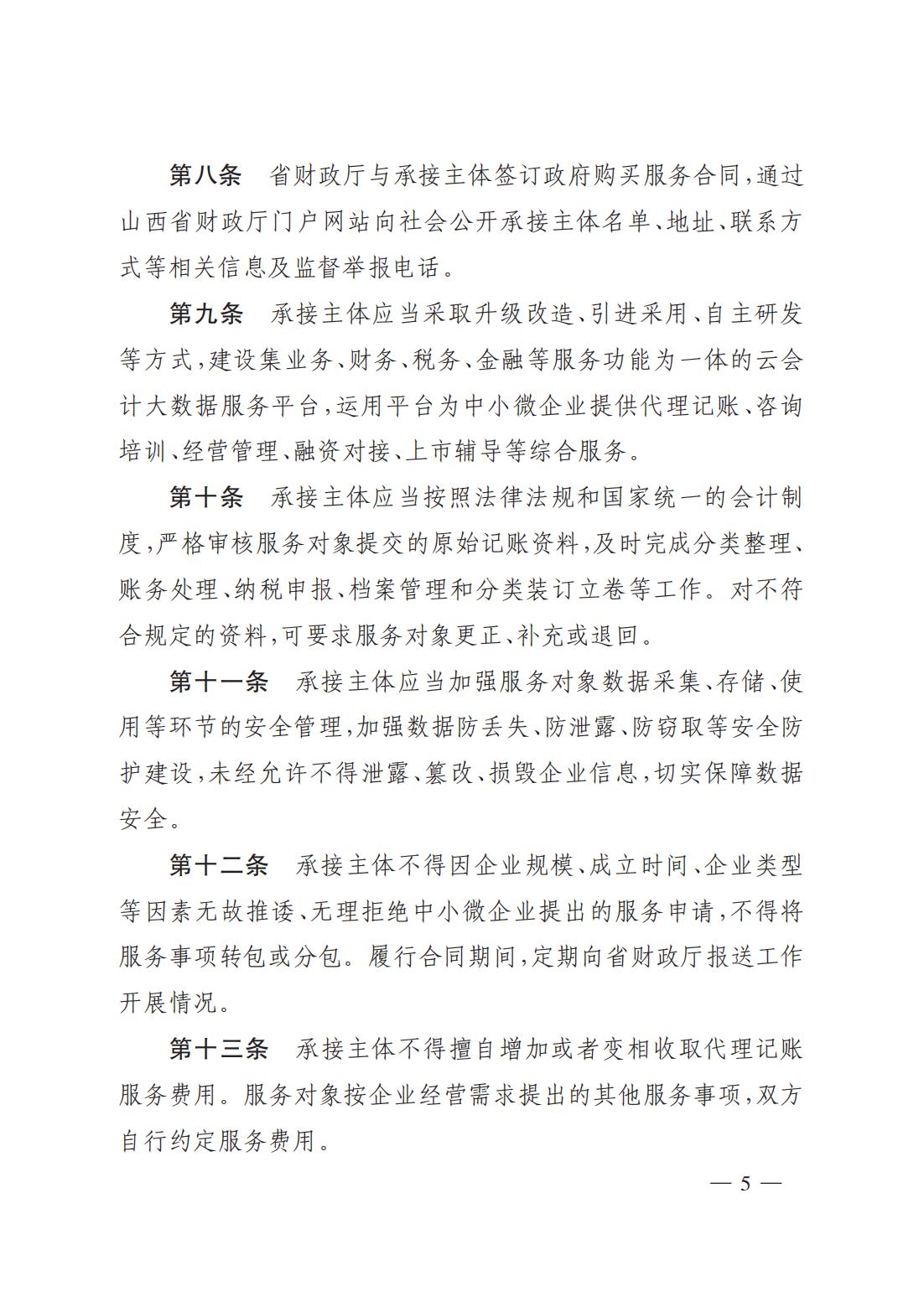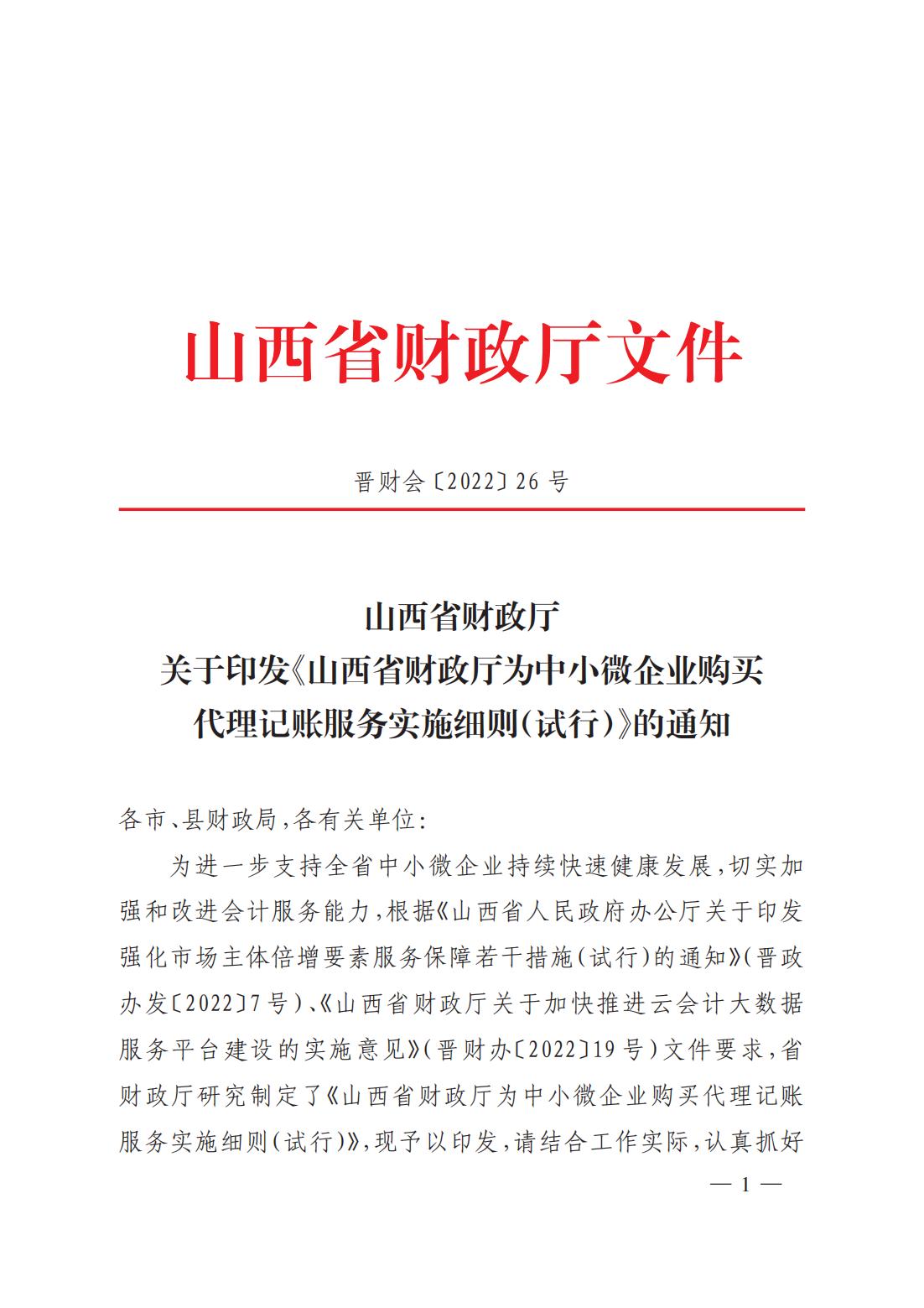 關(guān)于印發(fā)《山西省財(cái)政廳為中小微企業(yè)購(gòu)買代理記賬服務(wù)實(shí)施細(xì)則(試行)》的通知